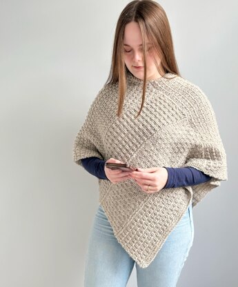 What a great poncho for those cooler days in a pretty coloured, warm yarn! A lovely, modern poncho for that hazy day walk, or sitting in the garden on cooler evenings.