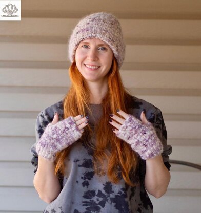 The Pattern contains instructions for the hat and the mitts. Charted and Written instructions for the stitch pattern are included.