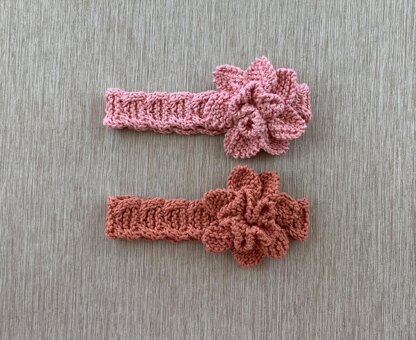 This adorable headband is very easy to knit. The band is knitted sideways. The flower is knitted separately and sewn to the band.