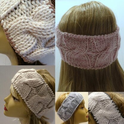 This is a fun and easy headband / ear warmer that takes less than ½ skein of yarn. It is a great first cable project because there is only one cable row. This headband can have many different looks by the weight of yarn you choose. Instructions are included for 3 different yarn weights -- super bulky, bulky or worsted weight and also information on how to decrease or increase the size. The headband can be edged with one of two different crochet stitches in the same or coordinating color. This project is knitted in the round on circular needles or dpns so there are no seams. The average knitter can complete this project within a few hours.