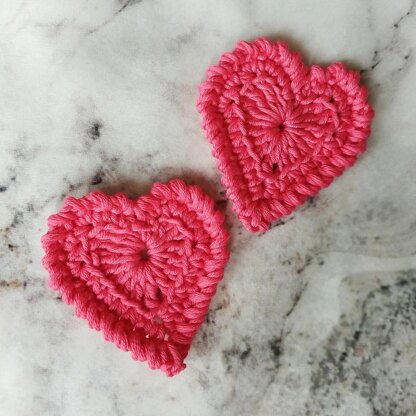 Yarn: Drops Muskat (100% cotton; 100 m 109 yds/50 g 1.75 oz), colour 40 Coral, 3 g / 6 m / 7 yds for each heart.