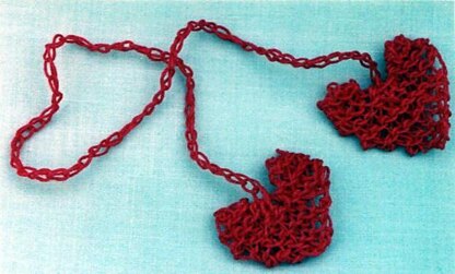 This is super fast work! Knit these up for teachers gifts. And for your bookworm friends! Use small amounts of crochet thread, and knitting needles, US # 5. You can make lots of these to sell at the church bazaar! With the ties and heart at each end, this could be used as a pony tail tie too! Or tie in a bow, and wear as a lapel pin on Valentines Day!