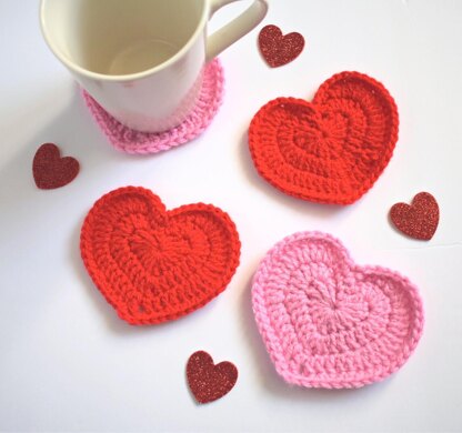This cute love heart coaster crochet pattern is the perfect decor for Valentine's Day! Place your crochet heart coasters around the house, in the kitchen, or use them as an applique or decoration.