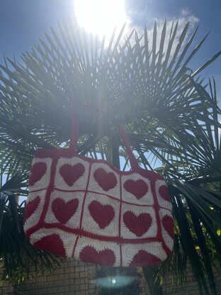 A rectangular tote made of sweet heart-centered granny squares — perfect for market strolls, festivals, or everyday charm. Spacious, stylish, and full of handmade love!