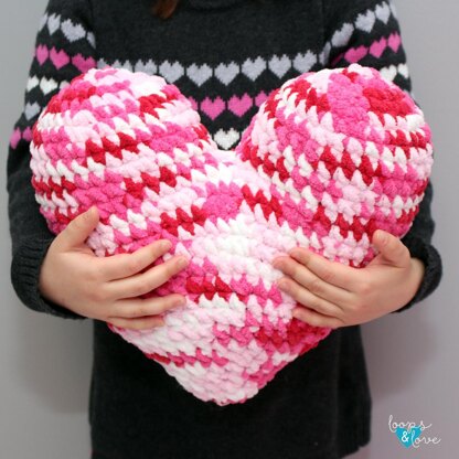These Crochet Heart Pillows are fun to make and are so soft and squishy when they are finished. Perfect for a fun throw pillow for a chair or bed, or for a little one to rest their head on while reading! This pattern includes instructions for two sizes of plush hearts. The smaller heart measures 8” wide x 7.5”tall. The larger heart is 11”wide x 10” tall.