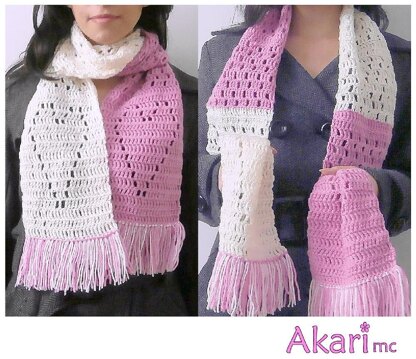 Learn how to make this beautiful girly scarf with hearts and fringes. It was made in 2 colors but you can make it all in the same color or combine even more colors.
