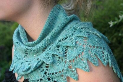 This crescent shaped scarf, fetchingly strung with beaded hearts, is as sweet as pie! The scarf consists of the heart border, an easy garter stitch body, and a tubular edging, and is worked sideways from one narrow point to the other.