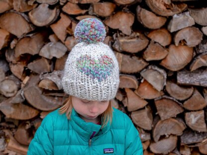 Our adorable heart pompom hat is the perfect gift for your loved ones, young and old. Available in the following sizes: Newborn, 0-3 Months, 3-6 Months, 6-12 Months, 1-3 Years, 4-12 Years and Women. The hat is made with Lion Brand Wool Ease Thick & Quick yarn.