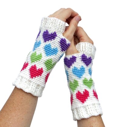 Show some love with these adorable fingerless mittens. A fast pattern you can make a pair of these in a weekend.
