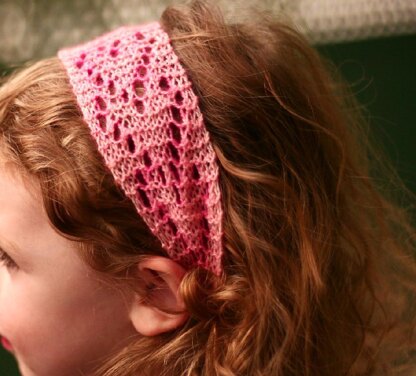 A Headband using a stitch pattern inspired by the estonian "chain heart" stitch patterns.