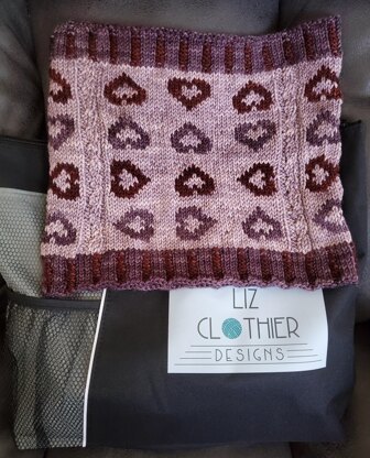 The Hearts in the Right Place Cowl came about because of the Covid 19 pandemic. It represents that we are all in this together despite being from all over the world. The mini cable show the separation that we are required to keep and the hearts show that despite this we can still come together from all directions to overcome it.