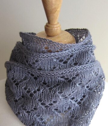 Looking for the perfect pattern for that coveted skein of cashmere or silk? This cowl will show off that beautiful yarn. Wrapped once, twice, or three times around the neck it is as light as a feather and soft as silk - or cashmere. This versatile cowl is a dreamy accessory for any season. The cowl is worked in the round in one piece. No seaming required. The samples in the photos here are done in SweetGeorgia CashSilk Lace (slate) and Malabrigo Silkpaca (azul profundo). Any lace weight yarn, particularly a silk or cashmere blend, may be used. Finished measurements: Approximately 76 cm long and 20 cm wide laid flat; approximately 152 cm in circumference. Skills required: knitting in the round; knitting lace: k, k2tog, yo, (sl1, k1, psso); blocking lace. It’s also important to be able to cast on and bind off very loosely. Pattern includes both charted and written instructions for the lace stitch, abbreviations, and notes.
