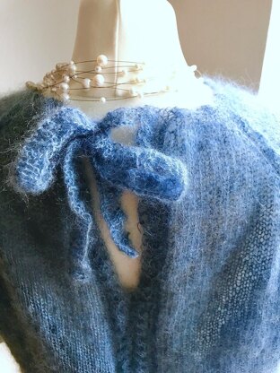 Der Halsausschnitt wird auf der Rückseite mit einem Band zur Schleife geschlossen.