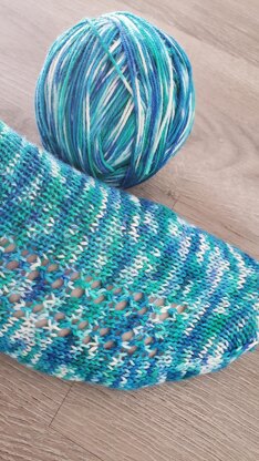 Hedera Socks were created for a lovely skein of yarn I received from Queen’s Yarn Boutique. The base is Kiss Sock, a wonderfully soft fingering weight yarn, but the colorway, called Serene, is what really inspired me. I wanted to design a pattern that would make the best use of the stunning variegated yarn. I chose mostly stockinette, to allow the beautiful colors to shine, with a simple creeping lace climbing the outside of each foot. They are knit top down, with a German short row heel and a rounded toe. This pattern is written for magic loop, but is easy to change if you prefer a different method.