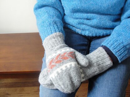 Warm and squishy adult mittens in stranded colorwork. Concise and simple afterthought style thumb treatment.