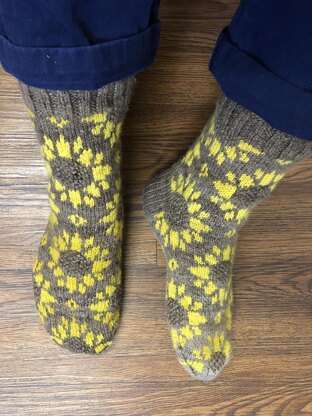 These stranded socks were knit with handspun yarn, but commercial fingering weight yarn works well too. Marigolds are a very popular flower in the midwestern United States, as are sunflowers (the Kansas state flower). Like my Helianthus Mitts pattern, the Helianthus Socks pattern pairs handspun marigold dyed fiber with a stranded colorwork design featuring a sunflower. In addition, the project uses handspun black walnut (the Missouri State Nut) dyed fiber, another local source of dyestuff found in the Midwest that is easy to use as a natural alternative to chemical dyes.