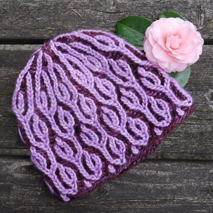 Heliotrope is one of the hats in a collection of brioche knits. You can purchase this pattern separately, or the Brioche Hat Trick e-book which includes patterns for three hats and two cowls. (A hat trick is 3 goals by the same player in a hockey game. Are these hats your goals?)