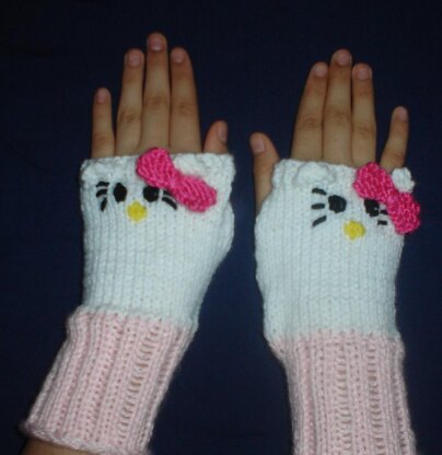 Hello Kitty Knit Fingerless Gloves Using only the stockinet and some ribbing you can create these lovely Hello Kitty fingerless gloves. Make any little girl happy.