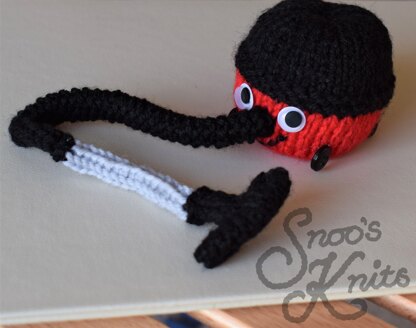 · Wool in red, black and grey, max 15g each. I used Double Knit [8-6 ply, “light worsted”.] Tension: 10cm x 10cm square is 24 stitches across and 32 rows.