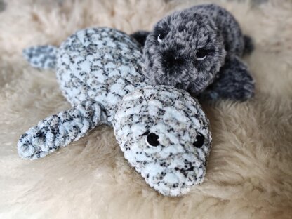 Inspired by the fluffy seal pups that appear on the Norfolk coast each winter, these cute seals are sure to please. These adorable seals are made from the same pattern, but the different yarns create very different toys! The super chunky yarn makes these large toys quick to make up too, bonus!