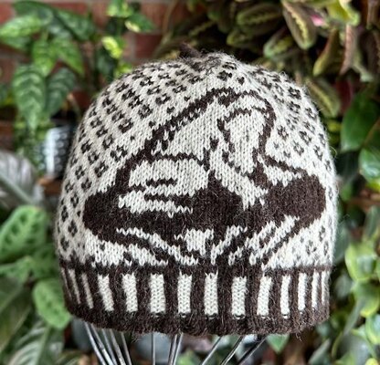 This is a pattern for a beanie style hat worked in the round and using the stranded colourwork technique.