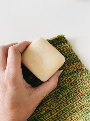 The Herringbone washcloth is worked in flat in one piece. It’s knitted tightly in herringbone stitch; you need to know how to knit, purl, and slip stitches.