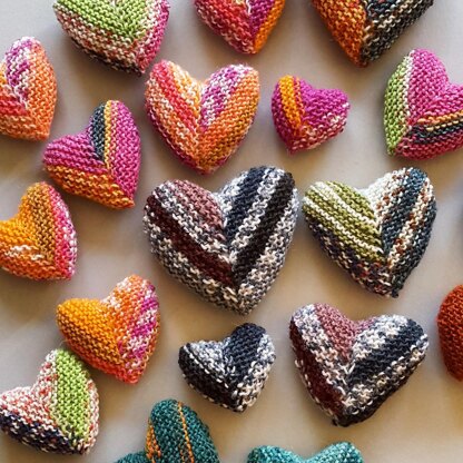 Even though cute little these hearts are 3-dimensional they are knitted back and forth. They are constructed of short rows and knitted all in garter stitch. They come in three different sizes.