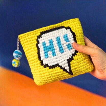 The Hi-Heart Mini Clutch pattern features two playful designs in one! One side says a cheerful “HI!” while the other shows a cute little heart, making this mini clutch perfect for makeup, cosmetics, or any small essentials. It’s like having two clutches in one!