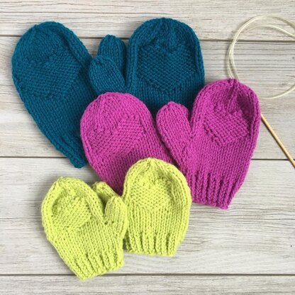 This mitten pattern is a fun, simple knit with a heart on each mitten. Because the heart is located on the palm of the hand and is knit in the same yarn as the rest of the mitten, the heart is a hidden gem that’s sure to make you smile. The mittens are interchangeable, if you’d like to wear the heart on the outside of your hand instead. The mittens are interchangeable, if you’d like to wear the heart on the outside of your hand instead.