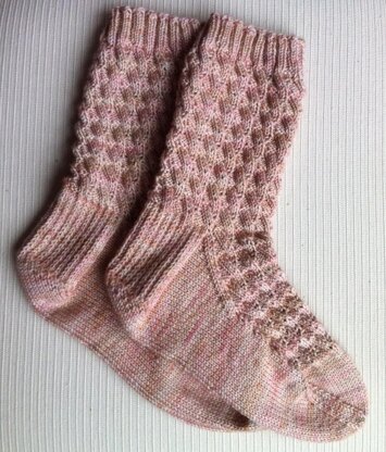 » Size Large shown in Fiberphile MCN Luxe Sock (80% superwash merino, 10% cashmere, 10% nylon; 375 yds [343 m] per 115 g [4 oz]): “Sakura” colorway, 1 skein
