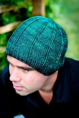 High Line Hat is worked from the brim up seamlessly. The knit lines on the main body of the hat flow from the brim ribbing up to the crown where they finish at a point.