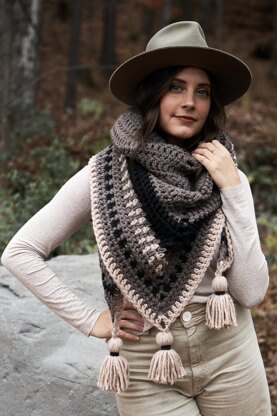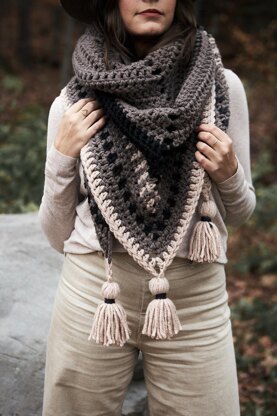 There is no accessory more versatile than the classic triangle wrap – wear it draped over the shoulders like a shawl or bundled with the point in front like a scarf for even more warmth. This tasseled beauty with linen stitch detailing is the perfect companion for any outing!