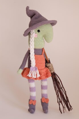 This is Hilda the witch, she is just the friendliest witch around and wouldn’t even think about putting you in her cauldron... she keeps that just for veg soup! When finished she measures around 16 inches tall (when using the recommended yarn and hook)
