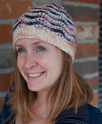 Hills and Vales has just the right amount of stretch to stay on your head when your hair is down as well as stretching over a ponytail or small bun. This toque is a great place to experiment with mixing colours, and is a great stash-buster since it uses so little yarn of each colour. If you’re wanting to incorporate more colours it’s easy to make with more than the two colours shown. The lace is repetitive, with three out of four rows having no increases or decreases, which makes it an excellent venue to venture into lace.