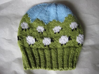 A pretty little hat covered with adorable little sheep. Ideal for a girl or a boy. I love it.