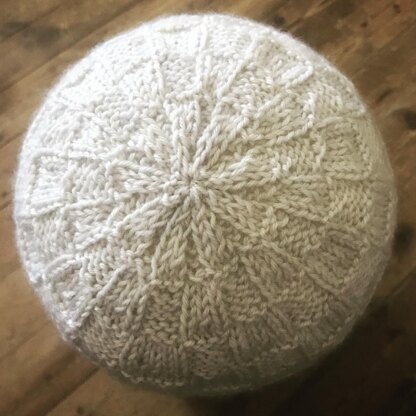Using only 125m of DK yarn and knitted in the round, this lightweight, but beautifully textured hat is ideal for spring/autumn as it can easily be kept in your bag or pocket for when you need that extra bit of warmth.
