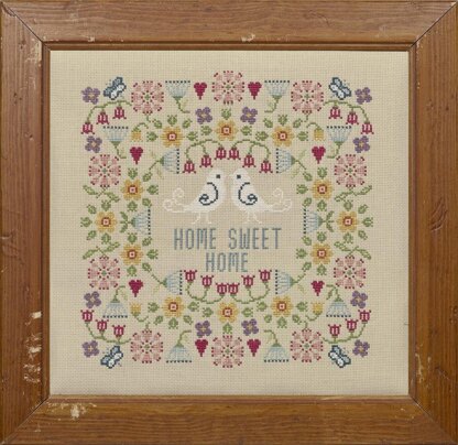 This lovely Flower Home Sweet Home Sampler kit contains 16 count Aida fabric, pre-sorted threads, gold plated needle, printed chart and full instructions.