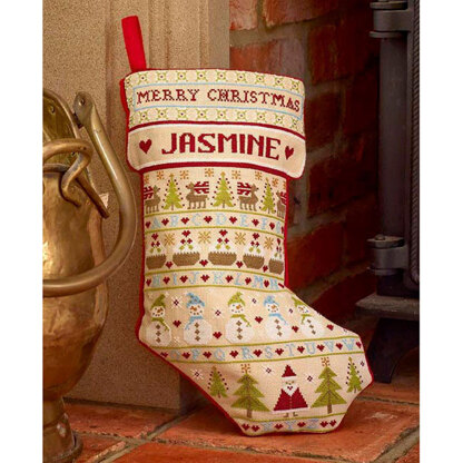 Historical Sampler Company Snowman Christmas Stocking Cross Stitch Kit - 30cm x 43cm