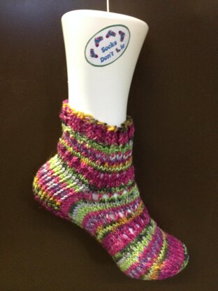 This is a knitting pattern for an ankle length sock. It is knitted in the round with DK yarn. The length of the foot can be altered to fit.