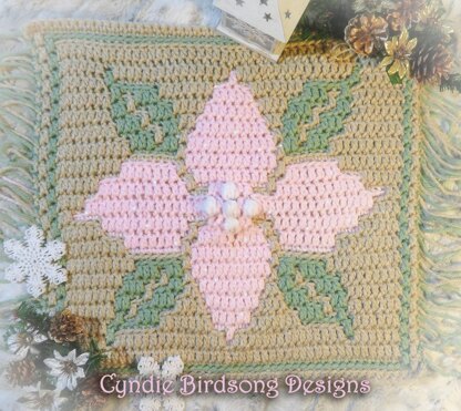 This features a poinsettia flower and leaves on a square shape with a thin border, and would work great to create Christmas & Winter decor such as blankets, pillows, satchel bags, placemats, etc.