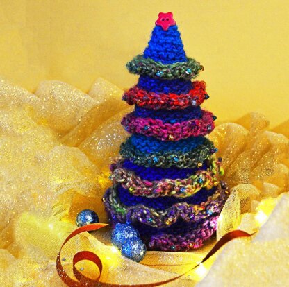 Combine elegance and happiness in this festive little tree! Beads adorn a garland ruffle that is attached as you knit. The only thing you need to sew is the star button at the top of the tree. (There are loose ends, but you can needlefelt them in if you prefer that to weaving!) You'll want to be comfortable working on double-pointed needles and will need to understand how to do a 3-needle bind-off to make this pattern.