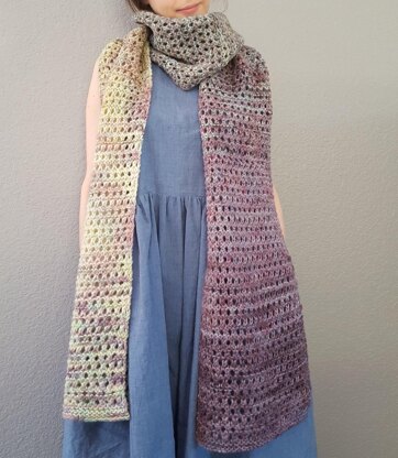 Such a wonderfully wearable scarf, it sits expertly about the neck without any fuss. The eyelet structure lends itself to convertible wear: Wrap it up to get toasty or drape over the shoulders for just the right warmth in air conditioning and transitional seasons!