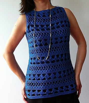 Combining feminine dainty flowers, joyous little circles and ribbons of lacy mesh, this versatile shell carries you from day to night with chic, sophisticated elegance. Best of all, the delightful little flowers and circles are crocheted continuously – that means no individual tiny motifs for you to hassle with!