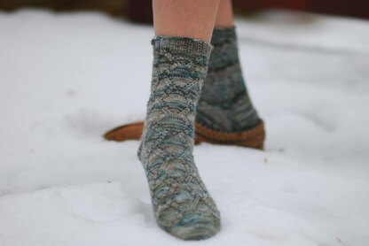 Holywell Bay is a beach on the north coast of Cornwall. It has an interesting feature in the shape of two tiny islands close to the shore. The diamond pattern of these socks reminds me of those two islands nestling next to each other.