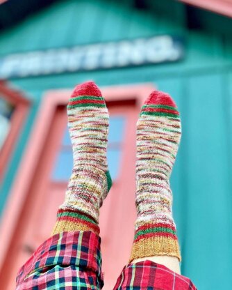 Home for the holidays was inspired by my favourite holiday movies. I love watching all the hallmark movies and curling up with a big cozy blanket. I wanted these socks to resemble that coziness. Created with 2 x 2 ribbing on the leg the socks feels like they hug your feet.