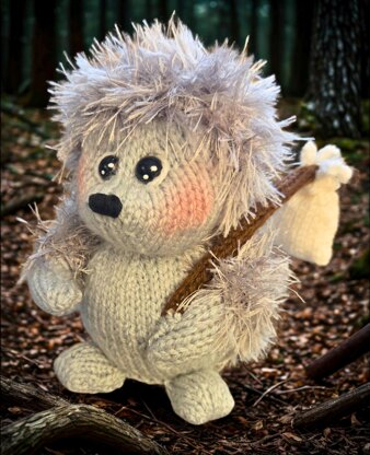 He is knitted flat using 3mm straight needles and Dk yarn plus Moments DK eyelash yarn.