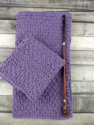 You'll need a 6.5mm Tunisian crochet hook and worsted weight cotton yarn (approx 275y for a handtowel and 95y for a washcloth).
