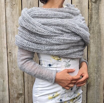 This unique and versatile lace shrug is warm and comfortable, the perfect accessory for any occasion! Featuring a very airy lace texture and lean stockinette stitch fon sleeves, it completes a wedding outfit, or a casual evening dress. The wrap can be worn multiple ways, crossing at the back or at the front or wrapped around neck as a scarf. Knit this for yourself or as a gift for friends and family! Unique designs for unique women!