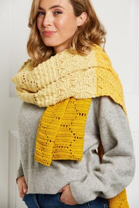 Inspired by the wonderful work of the bee, this wrap uses different stitches to create multiple textures, all reflecting the honeycomb pattern.