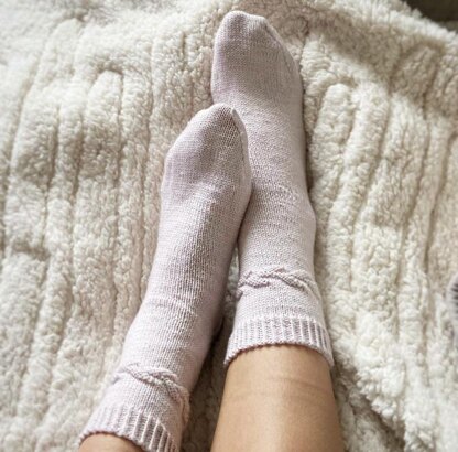 My Honeysuckle Socks are a simple sock pattern, knit in the round from the top down, with a simple leaf vine design around the ankle.